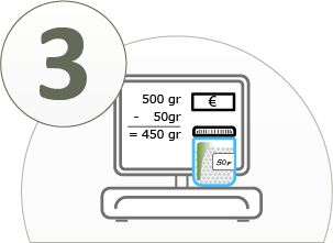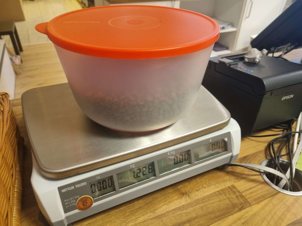 am Ende des Einkaufs wiegen wir deinen Einkauf und du bezahlst natürlich nur den Inhalt
