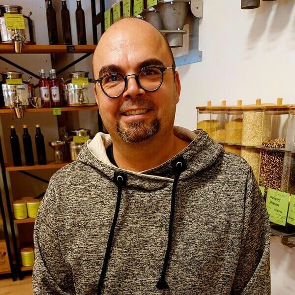 Als ich vor einigen Jahren das Prinzip der Unverpackt-Läden kennen lernte, war ich sofort begeistert. Der Wunsch, selbst Teil dieser Bewegung zu werden, wurde bald konkret und beendete nach knapp 20 Jahren meine Tätigkeit bei einem der größten Schokoladehersteller Deutschlands. Im April 2022 ging dann der große Traum in Erfüllung und mein „drittes Kind“ öffnete zum ersten Mal seine Türen. Mit Ohne Drumherum bin ich beruflich wirklich angekommen. Ich freue mich jeden Tag über gesparte Plastikverpackungen, spannende Projekte, interessante Gespräche mit motivierten Menschen und darüber, Teil der lebendigen Vaihinger Gemeinschaft zu sein.